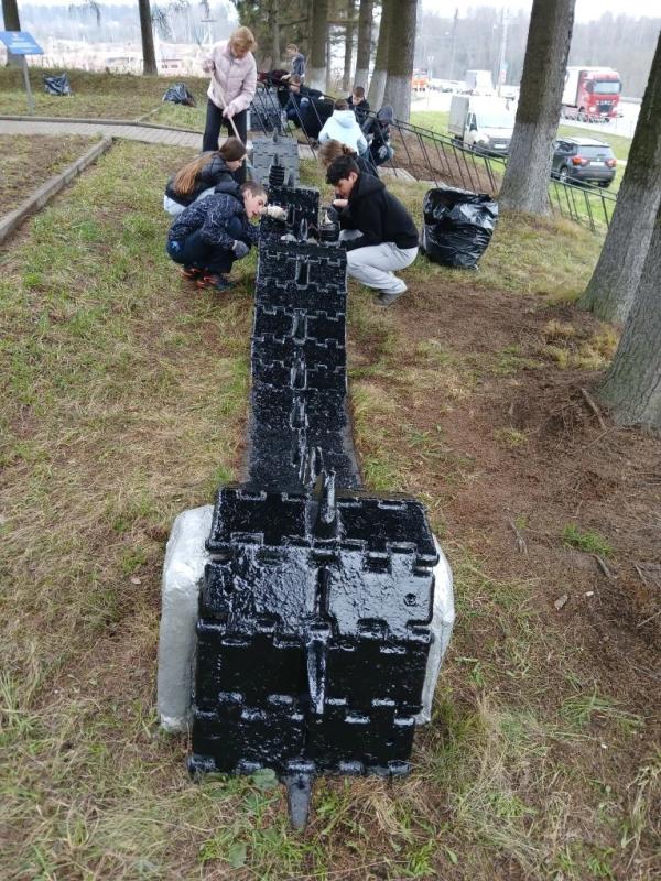 Также были проведены работы по покраске монумента, бордюрных камней, и всех элементов экспозиции, входящих в мемориал.